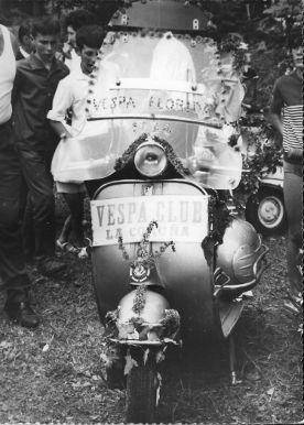 Fotografías de mediados de los años 60 tomadas en Cecebre (San Salvador), parroquia del ayuntamiento de Cambre, en la provincia de La Coruña. Corresponden a la festividad de la Vespa Florida, actividad de caracter lúdico organizada por el Vespa Club La Coruña anualmente. Las vespas eran adornadas con flores y hojas, se celebraba una comida campestre, se entregaban premios a las más vistosas... sin lugar a dudas, una buena excusa para salir a rodar juntos y pasar una jornada festiva rodeada de amigos.
