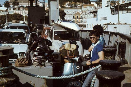 Nosotros –comenta Óscar- que íbamos detrás de él por si le volvía a pasar algo, veíamos salir una nube negra de su tubo de escape. Era la solución que nos dio y funcionó. Al principio te planteas que hacer, si para o segur, pero como la cosa iba bien, tiramos para delante. Al ir tan despacio, la jornada se nos hizo interminable. A mitad de camino paramos a cenar y nos pusimos las botas, pero antes de cenar, nos surgió un problema que, de alguna manera teníamos presente que nos sucedería en Marruecos. La autonomía. Cinco litros más la reserva, con dos encima, calculamos que nos daría para hacer 120 km más o menos. El caso es que levábamos un bidón, pero no contábamos que en Portugal no hubiese una gasolinera cada pocos kilómetros. Cogimos un ferry en Setúbal, nos deja en el otro lado y la sorpresa es que no había nada. Cuando ya nos veíamos tirados, cayendo la noche, encontramos una especie de cortijo donde un señor nos vendió 10 litros. Estábamos escarallados, pero como decidimos parar a cenar, se nos cambió por completo el ánimo. Y aunque seguíamos circulando despacio, no sé si fue por el vino o por tener el estómago lleno, afrontamos el trayecto que nos quedaba con otra cara.