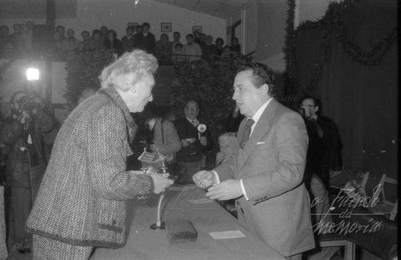A marquesa de Aranda, coñecida popularmente como a marquesa de Rubians, recollendo un premio da Camelia das mans de Pio Cabanillas.