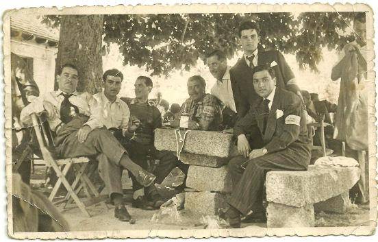 Según me cuenta Pepe Yuma, "La fotografía está tomada en la Casa de Campo de Madrid con motivo de un Rally de primavera organizado por Vespa España. Había más de mil vespas. Yo soy el de la derecha que está de pie. Invitaban a siete pilotos de cada provincia. Y aunque yo no estaba invitado, mis compañeros me llevaron como mecánico del grupo de vespistas coruñeses. Yo no puse una peseta. Me pagaron todos los gastos. Recuerdo que nos alojamos en el Hotel Plaza durante una semana. Hasta Madrid fuimos en Vespa. Nos lo pasamos de maravilla". Si nos fijamos con detalle en los brazaletes de nuestros protagonistas, podremos leer: "IV RALLY NACIONAL VESPA". En el reverso de la fotografía ptambién se puede leer la siguiente reseña: "Concentración de Vespas primavera en Madrid. 2-6-1956".