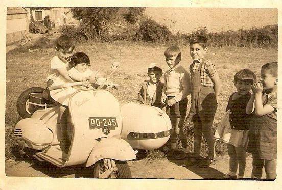 Nos cuenta Carlos López Feijoó, que el niño que aparece sentado en la Vespa con Carmiña, es él. Y que la fotografía está tomada en el barrio del Rocío en Bouzas, Vigo. El sidecar pertenecía a su padre, Julián López Pérez, conocido por el apodo de “el francés”. El “francés” nació al otro lado de los Pirineos. En tierras galas. De madre Cordobesa y Padre Riojano. Ambos emigrantes. A Vigo llegó como técnico para montar maquinaria en diferentes empresas. Que él recuerde en Álvarez y Massó. Por aquel entonces paraba en la Pensión Casablanca. “El francés” era un apasionado del fútbol. Llevaba al “Celtiña” en lo más profundo de su corazón. Era el equipo de sus amores. También le gustaban mucho los niños. Carlos nos cuenta que su padre cargaba el sidecar con los chavales del barrio y se los llevaba a todos a ver los partidos. A su madre, hermano y a él, también los llevaba a las excursiones organizadas por el Vespa Club Vigo. Recuerda todavía hoy una excursión en concreto. La que hicieron a Zamora, en pleno invierno, cruzando el Alto de la Herradura, entre las provincias de Pontevedra y Orense, y las infinitas curvas del trazado. También el frío que pasaron los cuatro viajando en esta PO 245 con sidecar ese día. Si nos fijamos, al fondo se puede ver un carro de bueyes. El carro era del Sr. Antonio "el Portugués".