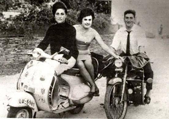 Domingo Rebolo nos puso recientemente en alerta con esta fotografía publicada el pasado 4 de agosto de 2016 en la hemeroteca visual del diario lucense EL PROGRESO. Bajo el título, "tres jóvenes circulan en moto por Triabá" (Castro de Rei) se puede ver a Pilar Anillo posando con una amiga en la vespa y a otro joven luciendo sus mejores galas en Triabá. Según apunta el diario la foto fue cedida por la propia Pilar al archivo de la Memoria dixital de Lugo. Era el año 1965.