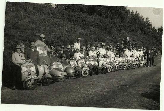 Tras los actos de celebración del día de la Vespa en Santiago de Compostela, la jornada siguiente, el 29-6-1964, la Comitiva del Vespa Club Vigo posa con el uniforme de verano en A ESTRADA. Todos ellos venían de realizar una excursión al PAZO DE OCA. Como se puede apreciar, de izquierda a derecha posan... el Presidente y Señora, los propietarios de los sidecares y finalmente, el resto de vespistas. Este tipo de cuestiones protocolarias, se cuidaban hasta el más mínimo detalle.