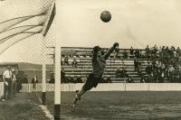 Afeccionados do Dépor mostran unha pancarta durante a final da Copa do Rei de 2002, disputada entre o Real Madrid e o Deportivo no estadio Santiago Bernabéu o 6 de marzo de 2002. O Dépor impúxose por 1-2 ao equipo branco, que celebraba ese día os cen anos da súa fundación.