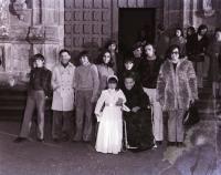 Se trata de un partido en St.Tomás de Aquino de la Academia Enot contra unos de Pontevedra, la madrina es Mariví Teira que daba clases de Taquigrafia y Mecanografía, al lado Luis, al fondo creo que son José Juan Baños,Luis Jueguen y Mito Mesejo+ y al derecha Gelucho.