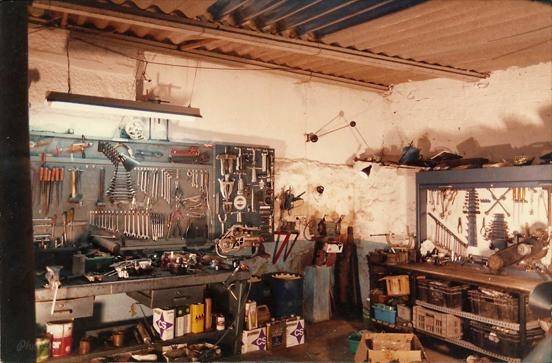 Taller familiar de Manolo Vespa en el garaje de su casa