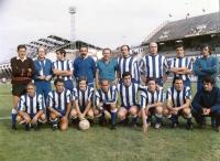 Joanet atrapa o esférico ante Gabriel Lezcano, nun lance do encontro da 28ª xornada do Campionato de Primeira División da Temporada 1969-1970, disputado o 5 de abril de 1970 no Estadio de Riazor. O Celta venceu ao Deportivo por 0-1. O recinto presentaba unha pequena bancada provisional no fondo do Pavillón dos Deportes.
