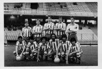 Joanet atrapa el esférico ante Gabriel Lezcano, en un lance del encuentro de la 28ª jornada del Campeonato de Primera División de la Temporada 1969-1970, disputado el 5 de abril de 1970 en el Estadio de Riazor. El Celta venció al Deportivo por 0-1. El recinto presentaba una pequeña grada provisional en el fondo del Pabellón de los Deportes.
