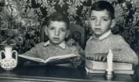 O protagonista da fotografia mira interesado a o cura, tantos anos destiñado na parroquia de Bamio