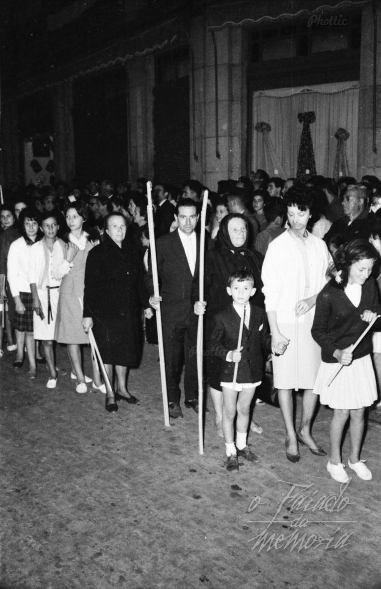 Jose Fernandez, pai da nosa Maica, tamen tras o seu fillo vai Manuela, era a procesion do San Roque do 1964