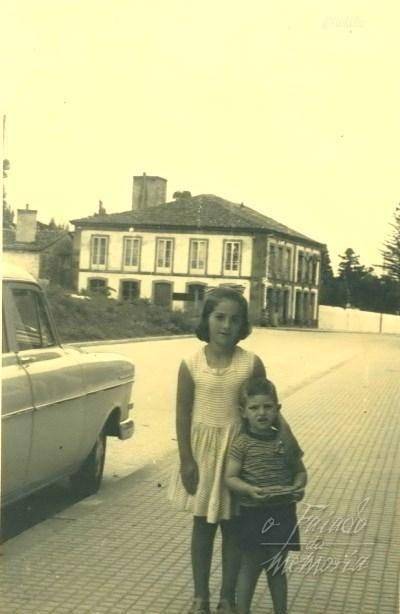 Na imaxen Lourdes e Julio Gallego, diante da casa que mandaran construir a familia dos conserveiros catalans de Pou, os Pais dos irmans Gallego eran os coidadores da propiedade. Aproveitamos pra ver a o fondo a casa donde vivia Francisco Daponte Fandiño, constructor de Vilagarcia, sogro co tempo de Rodriguez-Eirea. Na misma casa vivia Vicente Abad e Lolita Caeiro, cos seus catro fillos, Vicente, Lina, Jose e Alberto