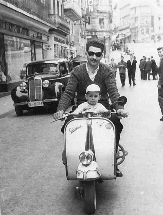 Mayo de 1958. Fotografía de Jose Carlos Alonso Villar (padre de Alberto Alonso) con su hijo José Carlos (2 años y 8 días) entrando en la calle Príncipe desde la Puerta del Sol.
