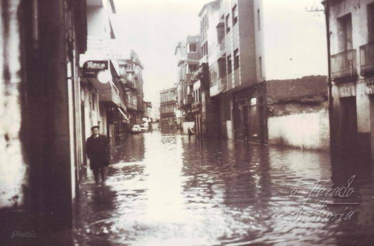 O rio de S Lucia pasa por a calle Rey Daviña, aqui a vemos a principios dos sesenta dramaticamente saindo por fora