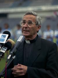 O boxeador deportivista Joaquín Alejos recibe o cinto de campión de España do peso pluma, logrado o 7 de outubro de 1944 no Frontón Cinema de Zaragoza, tras vencer na final ao vasco Víctor Belandia.