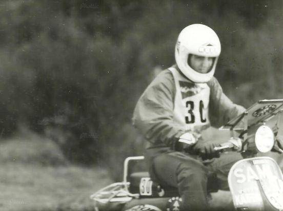 Año 1981. Volta motociclista a Galicia. Fotografía en la que aparece Alberto Alonso enfundado en su mono de agua, revisando fugazmente el rutómetro.