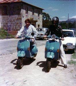 Quique y su amigo Carlos dispuestos a dar una vuelta en Vespa
