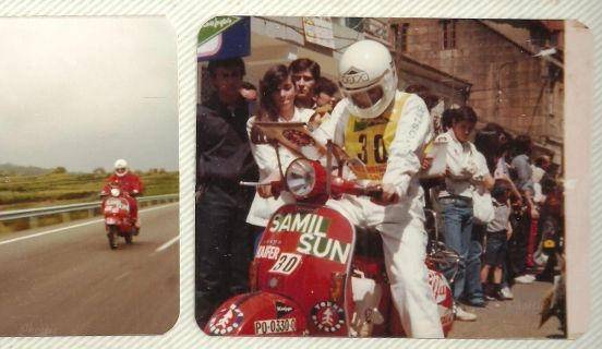 Yo además, como corrí en rallyes, el tema de mapas y orientación lo llevo muy bien. Es muy difícil que me pierda. Me iba a la Diputación, me cogía los mapas de Pontevedra, La Coruña… había unos mapas muy grandes de las cuatro provincias que yo los diseccionaba y casi puedo decirte que de tanto trabajar sobre ellos me los sabía de memoria. Hacía fotocopias, calculaba donde se tenían que poner los coches que nos suministraban gasolina… la vespa tenía autonomía de ciento y pico kilómetros. Me acuerdo de una etapa en los Ancares donde no había gasolineras, tuvieron que anular un tramo porque la gente se quedó sin una gota de combustible en los depósitos.