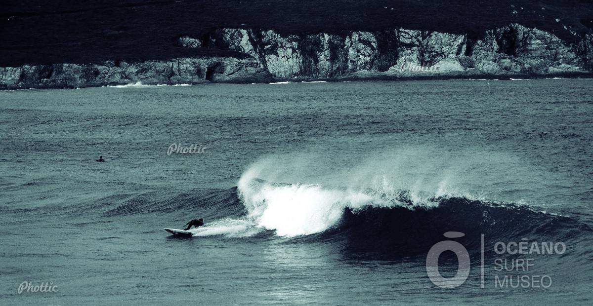 En esta fotografía de Willy Uribe, un surfer sin identificar coge el pico de la derecha saliendo en baja. La imagen fue tomada en la playa de Pantín (Valdoviño, España).