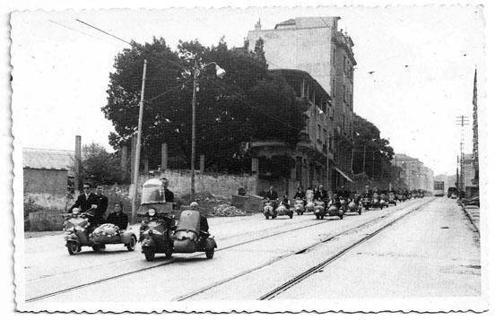 Finalizado el retrato de estudio, la comitiva Vespista se dirigió hasta el Hotel Universal, causando durante todo el recorrido una gran admiración entre los viandantes. Durante el recorrido, fueron varias las veces en las que se tuvieron que detener debido a que la gente les pedía insistentemente que parasen. “Algunos, -nos comenta el Sr. Moreira- bajaban en pijama, con una cámara y nos hacían fotos”, “otros, al escuchar las sintonías que entonaban Os Morenos de Lavadores con sus gaitas, pedían a los gaiteiros que tocasen determinadas piezas”.