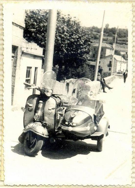 Lambretta con sidecar de Manuel Cernadas Alfaya en el puente de Cabral, Vigo. Por aquel entonces, un vehículo así causaba expectación. "No te exagero si te digo que a veces, cuando paraba en la cafetería Alaska, había 15 personas mirándola de arriba abajo. La conducción de un sidecar no es sencilla, te exige mucho fuerza en los brazos y coordinación con el que llevas al lado. Con la práctica después incluso levantaba el sidecar del suelo. Un día recogí a un amigo y al coger una curva, en vez de echar el cuerpo hacia mí, se inclinó hacia el otro lado y casi volcamos. El accidente más grave lo tuve en el cruce de los llorones. Había un tranvía parado justo en el cruce. En ese momento yo iba circulando a su lado cuando de repente un Ford de los antigos me embistió de lado. Suerte que reaccioné girando el sidecar y conseguí amortiguar un poco el golpe. Si llevase a alguien conmigo, te puedo asegurar que hoy no lo cuenta. El golpe fue tan fuerte, que di unas cuantas vueltas de campana".