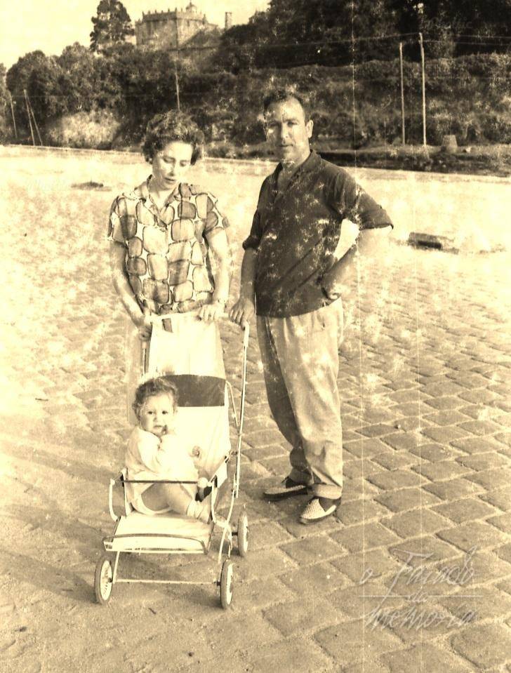 Traballador de Fenosa, cantaba na Coral de Vilaxoan, na foto con Maria sua dona e a sua filla de paseo por Ferrazo