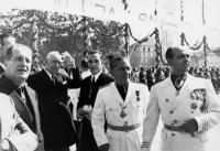 Había que ter coidado coa indumentaria na praia. ¡caian multas¡ Había todo un protocolo sobre praias de mulleres e homes. Nada de estar xuntos e revoltos... Aquí vese a unha das irmans Sosín xunto ó balneario da Concha