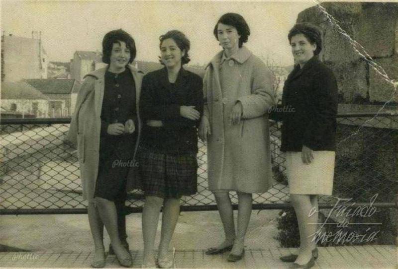 Moito mais importante que hixe era o feito de quitar unha fotografia, o Rio do Con era un lugar moi utilizado pra facelo. Catro amigas, desde a esquerda Maruja Varela, Encarna Gallego, sentimos non identificar as outras duas amigas