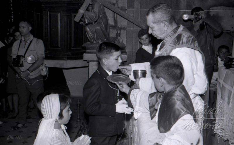 Jose Gago Tarrio, dando a comunion na igrexa de Cea donde foi cura titular unha chea de anos