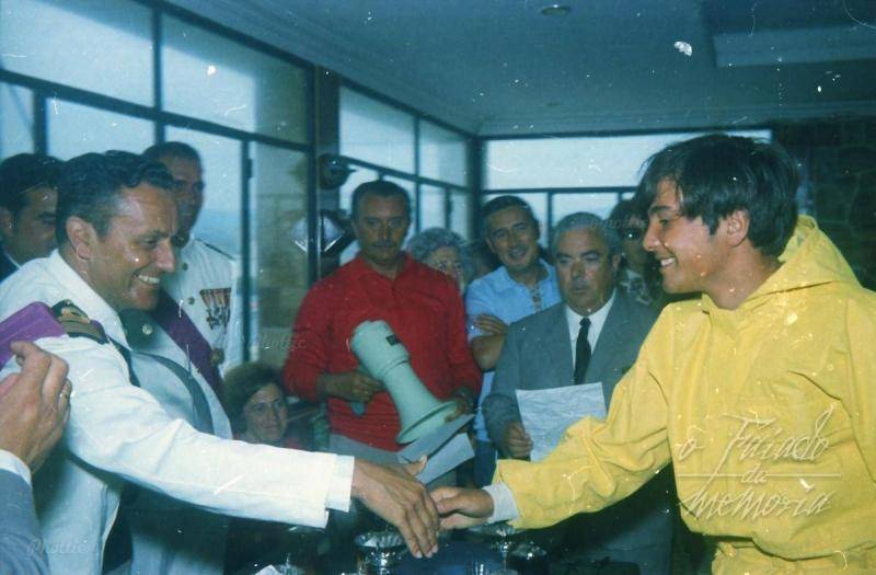 Recibindo un trofeo das mans do Comandante, Luis Rodriguez Daponte, como organizadores Jose Crespo e Guillermo Poyan