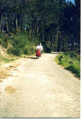 Esta fotografía de Fernando Rial, está tomada a finales de los años 80 en la parroquia de Peitieiros, Gondomar, cerca de la casa de sus abuelos, en la zona de A Peroleira. Aunque se trata de una instantánea lejana, para Fernando, tiene muchísimo significado. Cada vez que la ve, le viene a la memoria los momentos Vespistas que compartió con su abuelo ya fallecido.