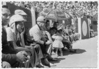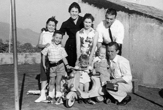 En esta otra fotografía, además de Maria del Carmen (con trenzas) y Urbano (con el cinto de vaquero), aparecen Maruja (de luto), Alfonso (con corbata), junto a María, Tito y sus dos hijos. Tito era hijo de un primo de Alfonso, Casiano, ambos nacidos a los pies del Cruceiro de Coya, en Vigo. Y aunque pueda parecer que se trataba del día de Navidad, por la cantidad de juguetes que aparecen en la foto, era la típica foto que se enviaba a los familiares que se quedaban en Galicia para decirles que allí las cosas les iban bien y eran todos felices. Nos cuenta Carmen que, “cuando todavía vivían en Vigo, su padre les mandaba desde Venezuela paquetes de juguetes. Recuerda que “por aquel entonces, las muñecas con las que jugaba eran de cartón. Las venezolanas eran de goma, tenían el pelo largo. Yo les cortaba la melena, les pintaba las uñas…” “Cuando llegaban los paquetes con juguetes, en el barrio se armaba un gran revuelo. Aquí apenas se veían juguetes y mucho menos este tipo de muñecas. Mis amigas no les sacaban el ojo de encima. En Venezuela había mucha más variedad y los precios eran populares. Yo aquí tendría unos siete años. Nos volvimos cuando tenía nueve”.