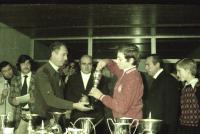 Tenia varias cruces al merito con distintivo rojo, y dos ascensos por méritos de guerra, una de ellas fué sacar a uno o varios (no me acuerdo) de un avión que amerizó al lado del Dedalo y se tiró para sacar a los pilotos. De todos modos era mi abuelo Manolo, la que se casa es mi madre Rosa Maria Ramos Teijeiro y las niñas son mis primas Rosa y Milagros que viven en Venezuela.
