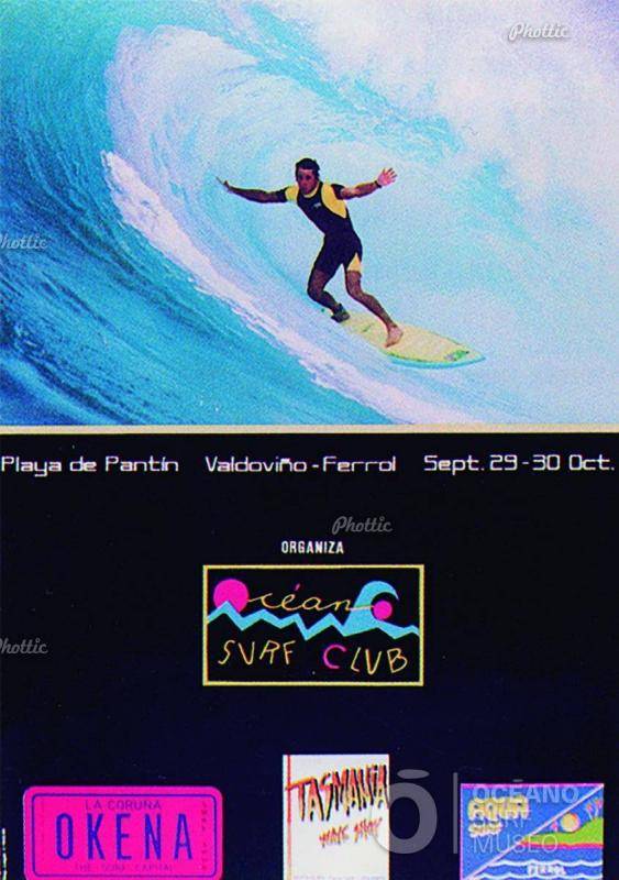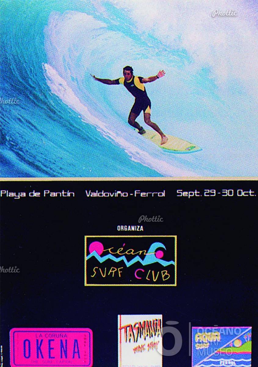 Cartel anunciador de la segunda edición del Pantín Classic de 1989, organizado de nuevo por el Océano Surf Club con más entusiasmo que patrocinadores. El sudafricano David Malherbe vence en la segunda edición de la prueba al británico Mike Raven, al australiano Mat Manners y al español Jupa Soler.