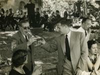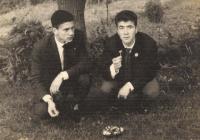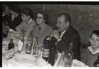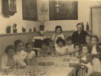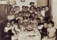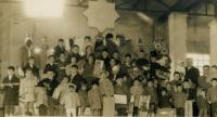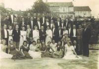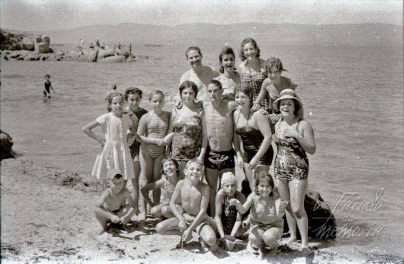 Un grupo de mozas e mozos na praia de Canelas a principios doa anos sesenta; lembrando aquel Vilaxoan no dia das Revenidas