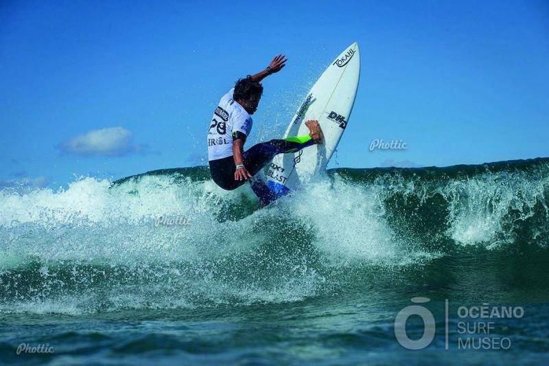 Braye Mihimana en su intervención en la prueba del Pantín Classic de 2015. El surfista, originario de la Polinesia francesa, ha estado tres veces más en Pantín (2013, 2014 y 2016).