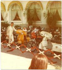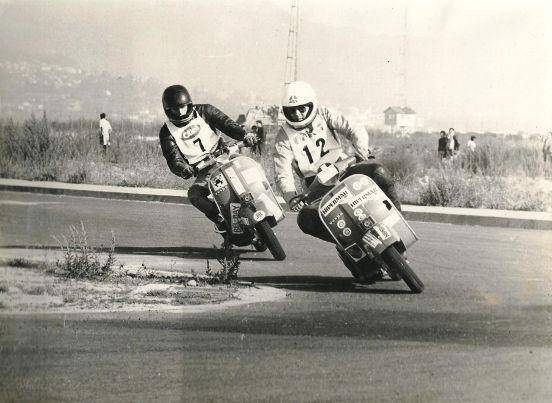 Fotografía en blanco y negro de Alberto Alonso, con el dorsal número 12, compitiendo en la I Carrera de resistencia celebrada en el circuito urbano de en Bouzas, Vigo . Alberto recuerda muy bien la fecha. “La foto es del 9 de octubre de 1983. Un domingo. Lo recuerdo porque el día anterior, nació mi hijo. En esa prueba corría con Manuel Portela como compañero de equipo”.