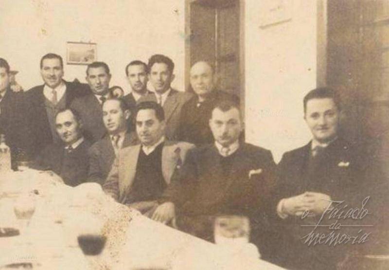 El que está sentado a la izquierda es el inspector de la Zona es D. Lupi que aparece en todas las fiestas...No podría asegurar si lo invitaban o se invitaba solo. Los demás son los mismos que estaban con mi abuelo Hermelindo en la comida de su jubilación. Un saludo