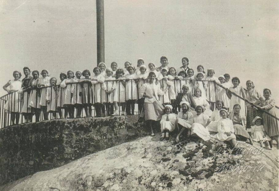 Un colexio de nenas de Vilagarcia, entre elas Chiruca Gonzalez, na cruz de Lobeira, eran excursions que se facian camiñando, o do autobus veu moito mais tarde
