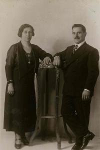 O matrimonio formado por Julia e Eduardo Miranda do San Roque. Estan nunha boda a principios dos anos sesenta