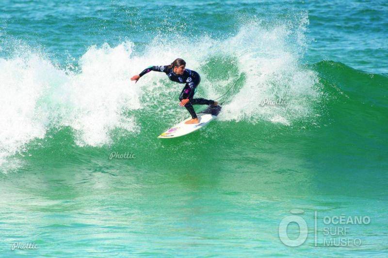 Sofía Mulanovich en su tercera participación en el Pantín Classic de 2012 (había estado también los dos años anteriores). La peruana forma parte de la lista de campeones del mundo que participó en las pruebas del circuito en aguas gallegas. Ella y Tyler Wright son las dos mujeres que ostentan este mérito. La imagen se corresponde con su competición en 2012, año en el que obtuvo el 9º puesto en la WQS.