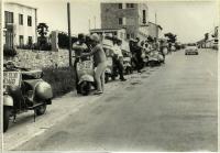 ¡Que levante la mano el que no se haya sacado el carnet de moto en una Vespa con la maneta algo atorada! ¡Quien no se acuerda del examinador que le suspendió a mala fe! Que si el slalom de conos, que si al llegar al final tenías que tirar el listón y frenar en la marca... A las autoescuelas también acudimos en busca de fotografías e historias. Aquí tenemos una exposición del parque móvil de la autoescuela Faro, en el antiguo circuito de prácticas de Vigo, situado en las inmediaciones de la Avenida de Madrid. Bajo estas lineas, podemos contemplar una de las vespas rotuladas con el logo de la Autoescuela y las distintas sedes de la misma.