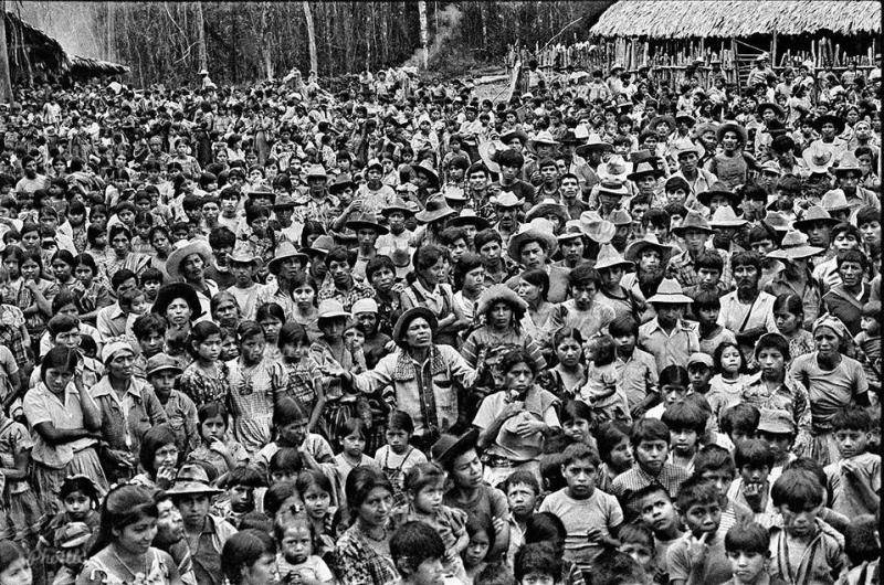 Las campañas de exterminio implementadas por el Estado de Guatemala en contra de poblaciones campesinas, en su gran mayoría indígenas, provocaron que miles de familias buscaran refugio en territorio mexicano para no ser aniquiladas. Las primeras oleadas iniciaron en 1981 y se incrementaron considerablemente entre los años 1982 y 1983, como producto de la política de tierra arrasada. Fotografía de Antonio Turok, refugiados guatemaltecos en la selva de Ocosingo, 1982.