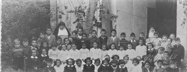 En las Filipenses y me supongo que en las Franciscanas igual estaban niños y niñas mezclados hasta ir la edad de ir al Instituto, al que se marchaban los niños quedándose ellas en el Colegio. En la foto distingo a un Rico en el centro con jersey oscuro y el que está pegado a la columna cerca de la monja de la izquierda diria que es un hermano de Froiña. Cándido.
