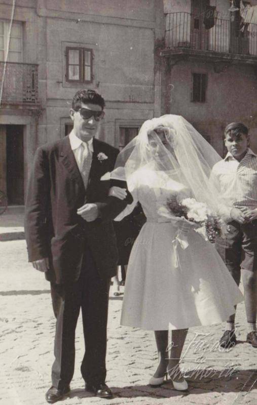 O Carril, finais da decada dos cincoenta, non imos contar nada da historia de amor entre os novios...¡Que foi tan bonita¡...Non imos falar do dia da boda...Imos falar do que vemos da fotografia. A novia Pili filla de Juanita e de Juan, vai acompañada do seu Padriño e tio Andres Lopez, a dereita Jose Luis Diz primo da noiva pola rama paterna