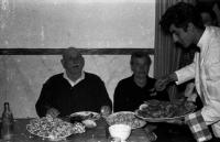 La primera señora de la izquierda,se llamaba Esmeralda y su marido el Sr.Torrado,era conductor de autobuses Pereira.Tenía dos hijos,uno de ellos llamado Luis.(Luis ,Paco o Joaquín,seguramente los conoceríais pues eran más o menos de vuestras edades).La que dije llamarse Olegaria, es Belarmina (la asturiana)madre de Olga y de Manolo.Todavía vive a pesar de todo lo que pasó,pues se le murió un hijo y fué una de las viudas del Cabo Razo.En el blog hay una foto del entierro de su marido.