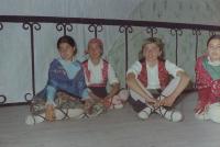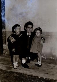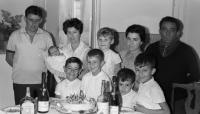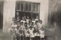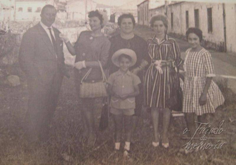 Foto tomada delante de la casa de Elena Aviles en Carril, de izquierda a derecha: Jesus Pérez 2º marido de mi abuela Maria Aviles Romero, Maria Teresa Aviles Chouza (la chica que está comiendo en la foto de la boda de Jesus), mi abuela, una amiga de la familia de Santiago, Carmina Pérez Aviles mi tía. El peque delante de mi abuela soy yo