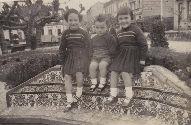 Nos bancos de Ravella tres irmans da familia Garrido Mauricio, ainda faltaba por chegar o mais novo
