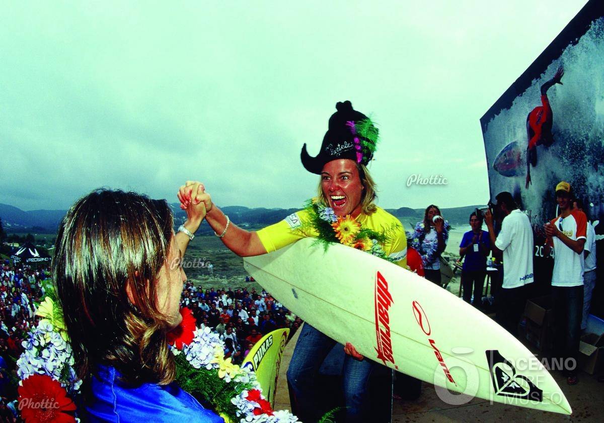 Adelina Taylor exultante en el pódium del Pantín Classic tras hacerse con la prueba del año 2004 y el título europeo. La española había sido primera también dos años antes.
