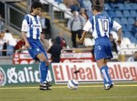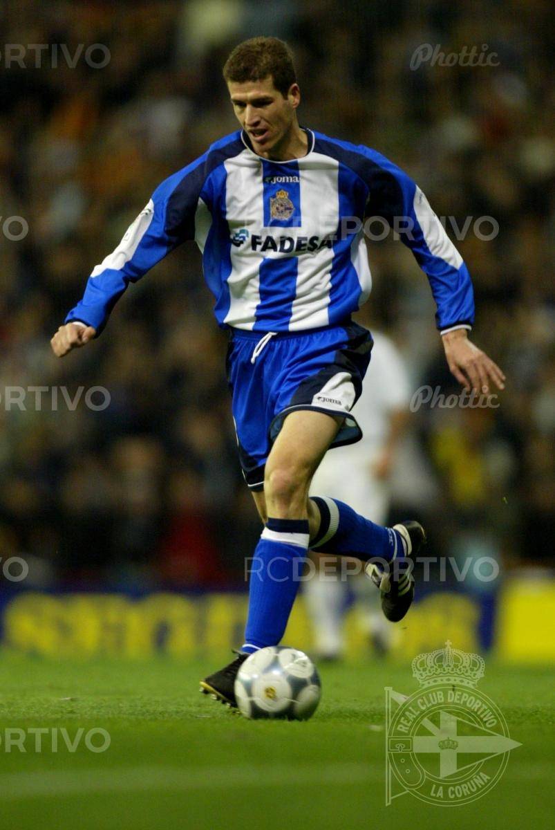 Romero conduce la pelota en un lance de la final de la Copa del Rey de 2002, disputada entre el Real Madrid y el Deportivo en el estadio Santiago Bernabéu el 6 de marzo de 2002. El Dépor se impuso por 1-2 al equipo blanco, que celebraba ese día los cien años de su fundación.