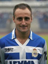 Romero conduce a pelota nun lance da final da Copa do Rei de 2002, disputada entre o Real Madrid e o Deportivo no estadio Santiago Bernabéu o 6 de marzo de 2002. O Dépor impúxose por 1-2 ao equipo branco, que celebraba ese día os cen anos da súa fundación.